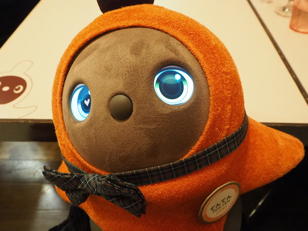 席にやってきたのは「てんてんちゃん」。その大きくてつぶらな瞳を見るだけで胸キュンです。なんでも瞳はディスプレイが6層になっており瞬きから瞳孔のひらき方まで、10億通り以上のバリエーションがあるのだそう。