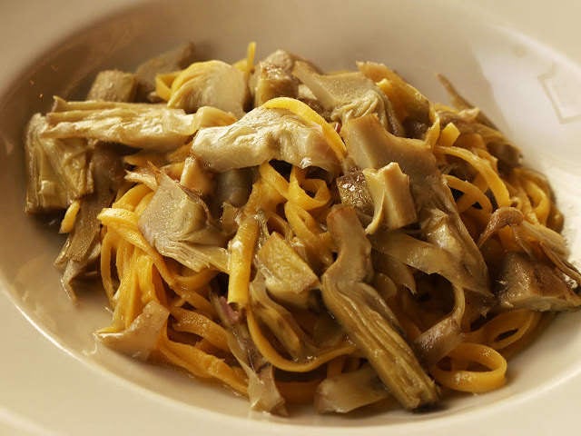 信州産のヒラタケとニンニクをオリーブオイルで炒めてパルミジャーノ・レッジャーノを加えたソースを満喫できる「信州ヒラタケのタリアテッレ」(写真上)は、平打ち麺のタリアテッレとソースの相性が抜群である。