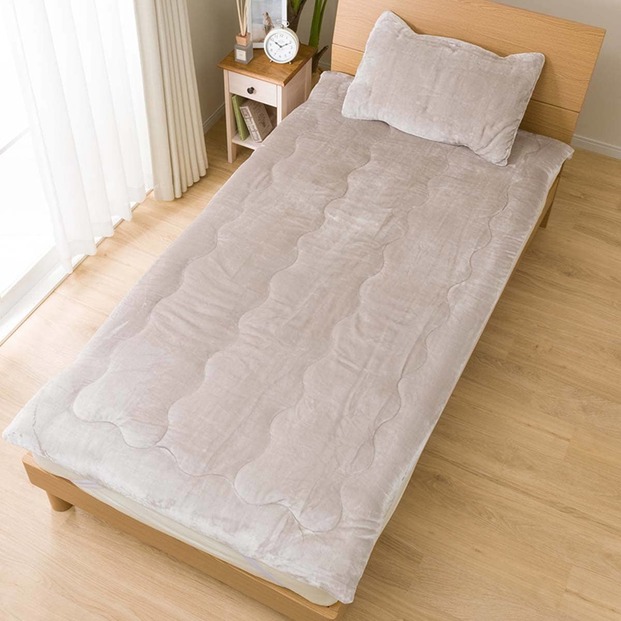 同シリーズの敷きパッドも要チェック。ふんわり中綿入りで程良い厚みがあり快適な睡眠を叶えます。四隅のゴムバンドで簡単に着脱可能。強化ゴムを使用しているのでヘタリにくいのも嬉しいポイントです。