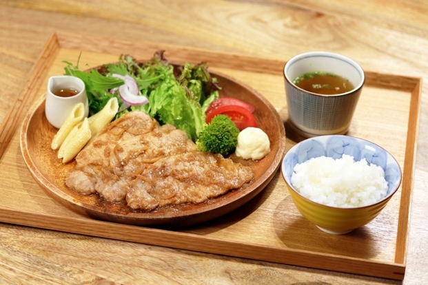 お昼のカフェでは縁起のよいメニューがずらり。ポーク神社(ジンジャー)と書かれた「生姜焼きプレート」(1,100円)、「勝(カツ)カレー」(1,540円)といったゲン担ぎに効きそうなメニューが揃います。ランチタイムはプラス300円でドリンクセットも用意され、お土産には「神社声援(ジンジャーエール)」(3本1,200円)が人気です。