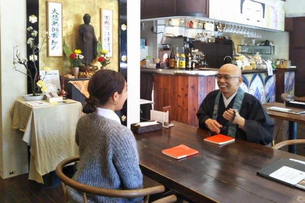 訪れる人たちのお目当ては日替わりの「本日のお寺ごはん」(1,100円)。栄養バランスを考えたマクロビ料理をベースに、体に優しいおかずが並び、ボリュームもたっぷり。店内は大きな窓から境内を彩る木々や草花を眺められ、あたたかな日差しが降り注ぎます。テラスもあるので、今の時期は外でいただくのも気持ちよさそうですね。ゆったりと心癒されるひとときを。