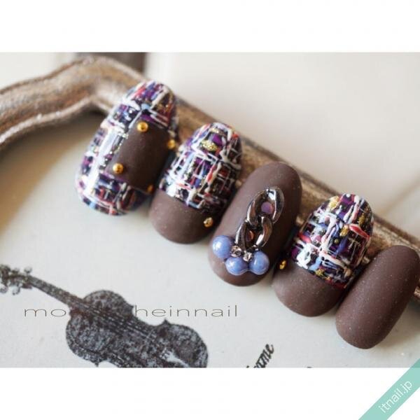 マットの定番!ツイードネイルも濃いめカラーで秋冬に