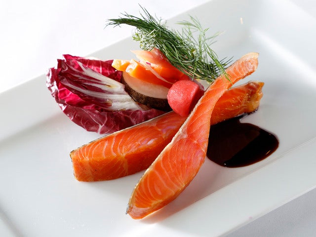 ねっとりした口当たりのサーモンは白ワインとともに楽しみたい