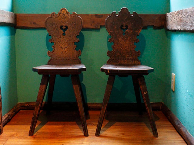 壁には、藤村氏からの借り物であるアート作品が並び、大正期から活躍した木工家・林二郎氏が手掛けたレトロなペザントチェアが並ぶカウンター上は、『オヒョイズバー』時代に使われていたコーヒーミルで彩られている。