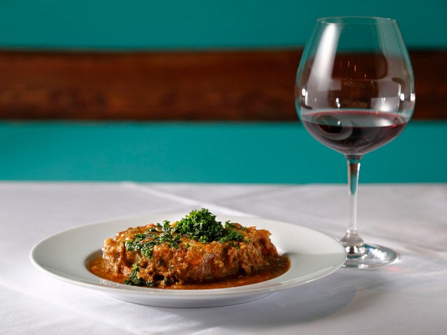 口の中でホロホロと崩れるほどやわらかく煮込まれたすね肉は、野菜のうまみもたっぷりと吸収した豊潤な味わい。骨の中にある骨髄もうまみの塊なので、ぜひともスプーンですくって堪能してほしい。コラーゲン豊富で、美容に気遣う女性にうってつけだ。