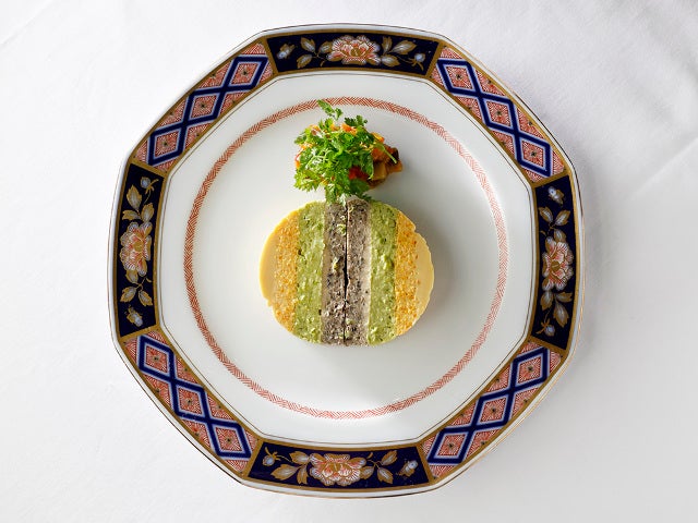 野菜は頻繁に変えているが、写真は外側から順番に、金時人参、グリーンピース、トランペット茸。取材日はラタトゥイユが添えられて登場したが、付け合わせもその時々で変えるという。