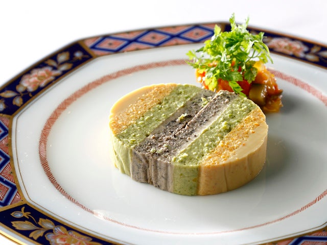 長年愛されているメニューのひとつが、「3種のやさいのオムレツ」(写真上)。細かく刻んだ野菜を卵と生クリームとともにかき混ぜた後、舟形に流し入れて固めるという工程を3度繰り返すことによって、美しい3層の卵料理に仕上がっている。