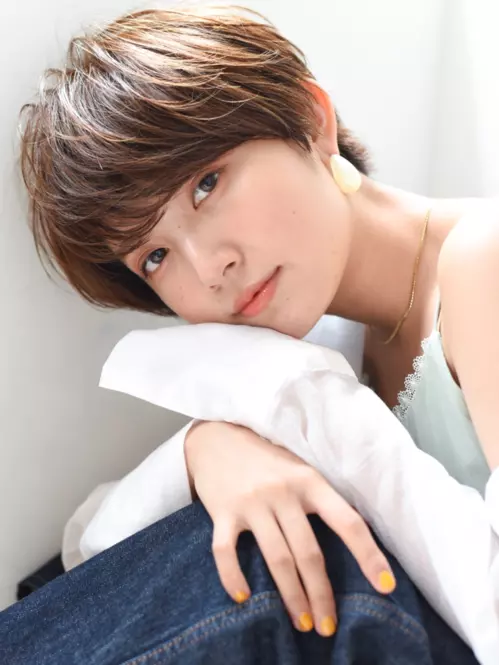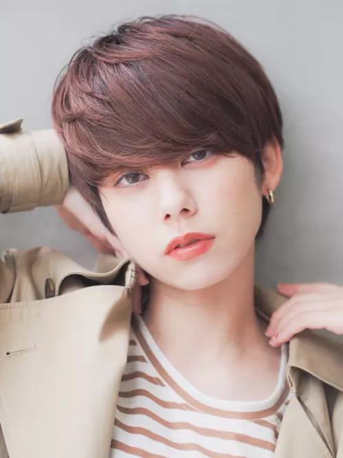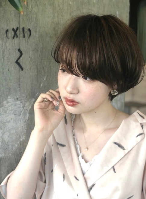 深く広めに取った前髪は、フェイスラインに沿うようにカット。シンプルで丸みのあるシルエットは好感度抜群です。透明感のあるブラウンカラーは、ハンサムなカジュアルさと大人可愛さを独り占めできますよ♡