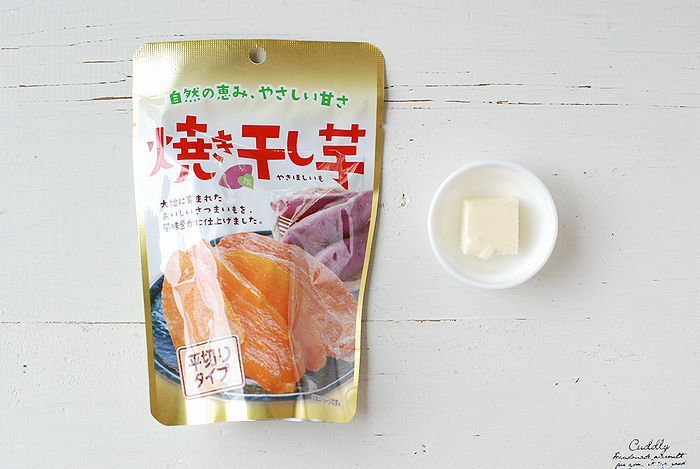 ② フライパンを中火で熱しバターを溶かす。カットした干し芋を加え両面焼き色がつくまでこんがり焼く。