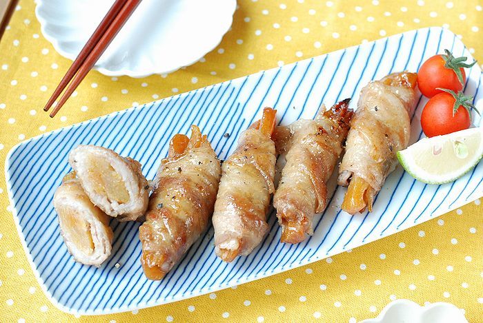 お肉で干し芋を巻くとご飯のおかずにもピッタリ。もっちり甘いお芋と甘辛ダレが絡んだ肉巻きは見た目も可愛く、お弁当のおかずにもお勧めです。