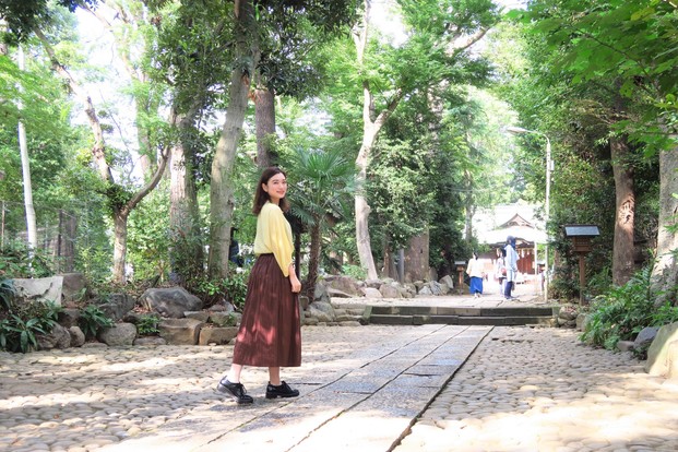 秋晴れの心地良さを感じながら本殿で参拝すると、不思議と心までグっと引き上がるような前向きな気持ちに。周辺はお洒落スポットも多いせいか、若者もたくさん参拝していました。