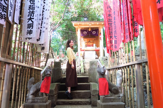 〈代々木八幡宮〉の境内にはもう一つ、ぜひ拝んでいただきたいお社が。本殿の右手奥に佇む〈出世稲荷社〉です。その名の通り出世のご利益があるとされ、仕事運アップを願って通う人も多いお社です。