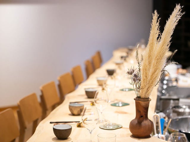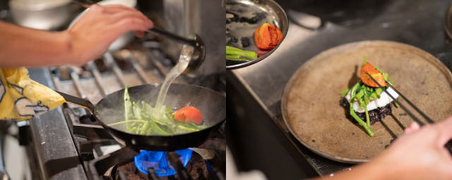 二人の出身地でもある千葉県の有機野菜をメインに据え、和食やフレンチ、イタリアン、中華や日本の郷土料理などジャンルレスな料理を日替わりで提供している。