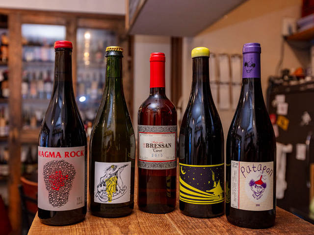 淡い味わいの赤やロゼを中心に、約500本の自然派ワインが揃う
