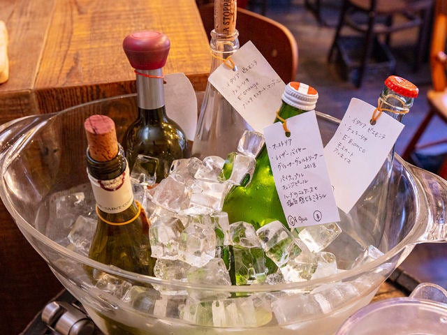 オーナーシェフの手島さんは「この店の最大の魅力は、見て選べるワインセラーと自然派ワインの豊富さ、小淵(さん)の料理。そして伊藤(さん)の人柄です」と、伊藤さんの接客を絶賛。気取らない温かなトークで、ワインに詳しくない人にもわかりやすく味を説明してくれるのがありがたい。