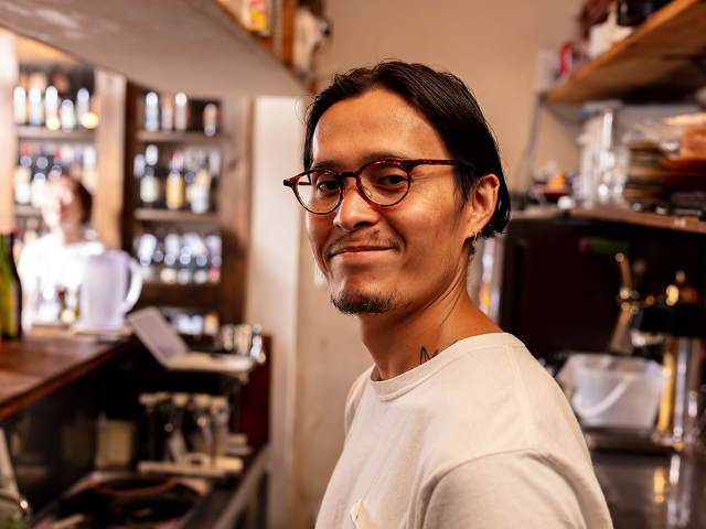 「僕が通い始めた当時は、『自然派ワイン食堂 レインカラー』という看板でした。仕事帰りの真夜中に通りかかってその看板を見て、『こんな深夜に自然派ワインを飲める店があるのか!』と驚いて入ってみたら、日本ではないような独特の雰囲気で、自然派ワインの品揃えもすごかった! そこからファンになり、仕事帰りに通うようになりました」(小淵さん)