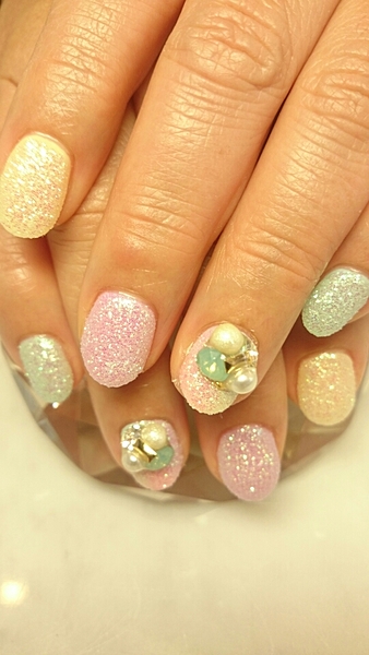 肌寒くてお洋服は秋服だけど、まだまだ夏が名残惜しい方は、お砂糖のようなシュガーネイルはいかが?