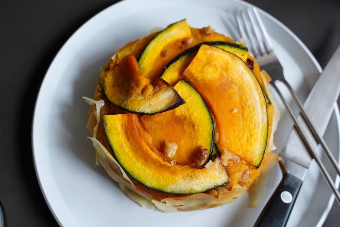 最後に皮付きかぼちゃのスライスをのせることで、見た目のコントラストを演出するだけでなく素材本来の味を味わえるようにしたそうです。