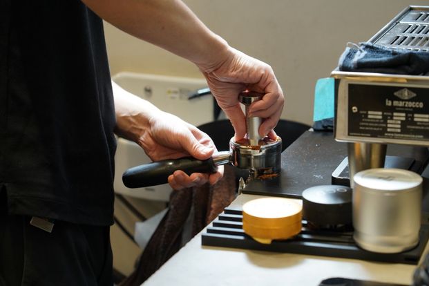 無機質な内装に和花が飾られていたり、途中に会社が入っていたり、まさかこんなところに?と思いながら階段を上がった先に小さくて本格的なコーヒーベースが現れます。