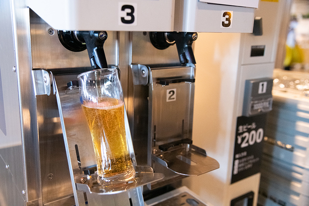 生ビールはどこにあるのか?とレストラン内を歩いていると、ドリンクコーナーにて、あっさり答えを発見!確かに200円!!しかも自販機型のビールサーバーです!