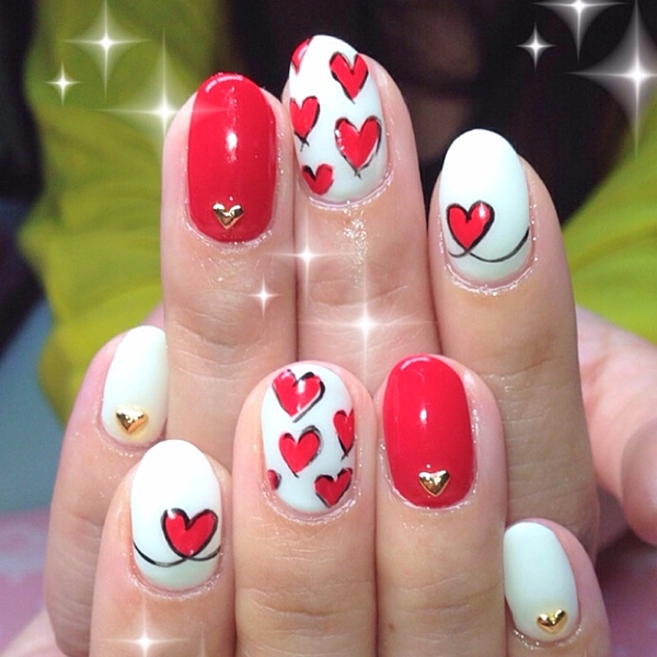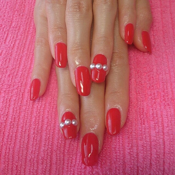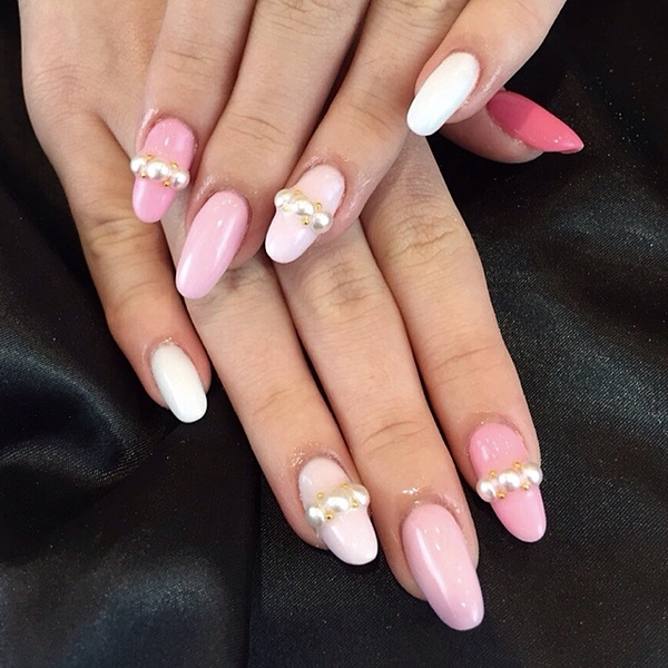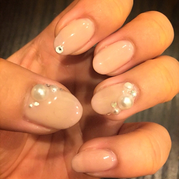 ラウンドパールもかわいいけど、ハートに変えるだけでラブリーなネイルの出来上がり♪