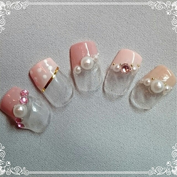 ピンクの1色塗りに、これをのせれば上品でかわいらしい手元に♪