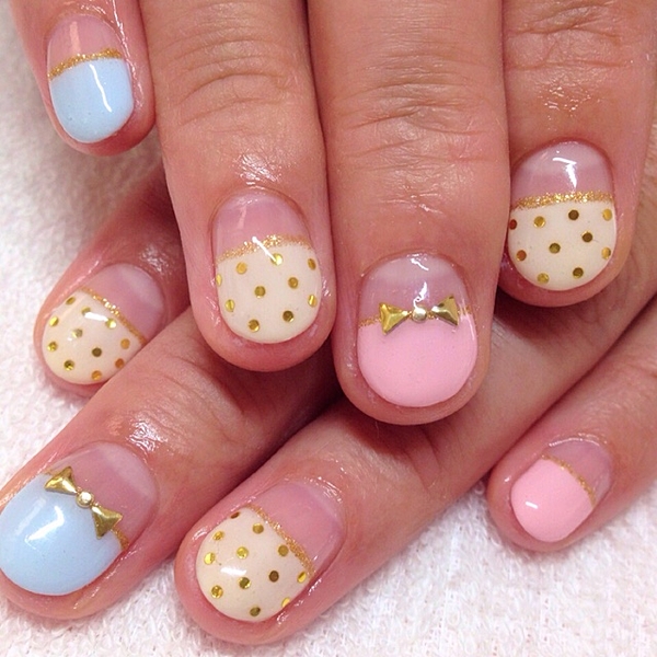 ブルー、ピンク、イエローのシャーベットカラーで逆フレンチ