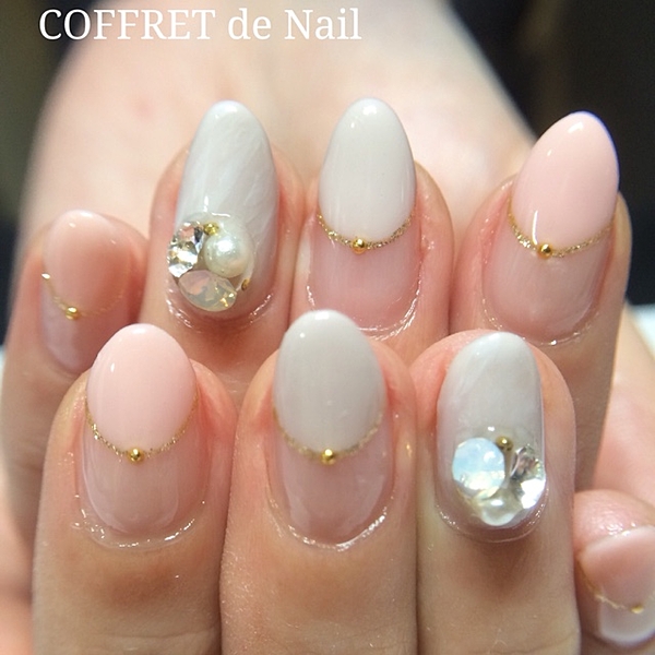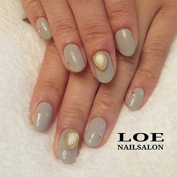 ちょっと大人な雰囲気に仕上げたい人は、ストーンをグレージュにするだけで大人っぽい指先に♪