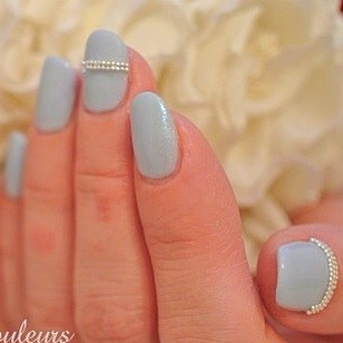 シルバーのラメラインとストーンが、アクセサリーみたいで華奢な指先に見せてくれます♪