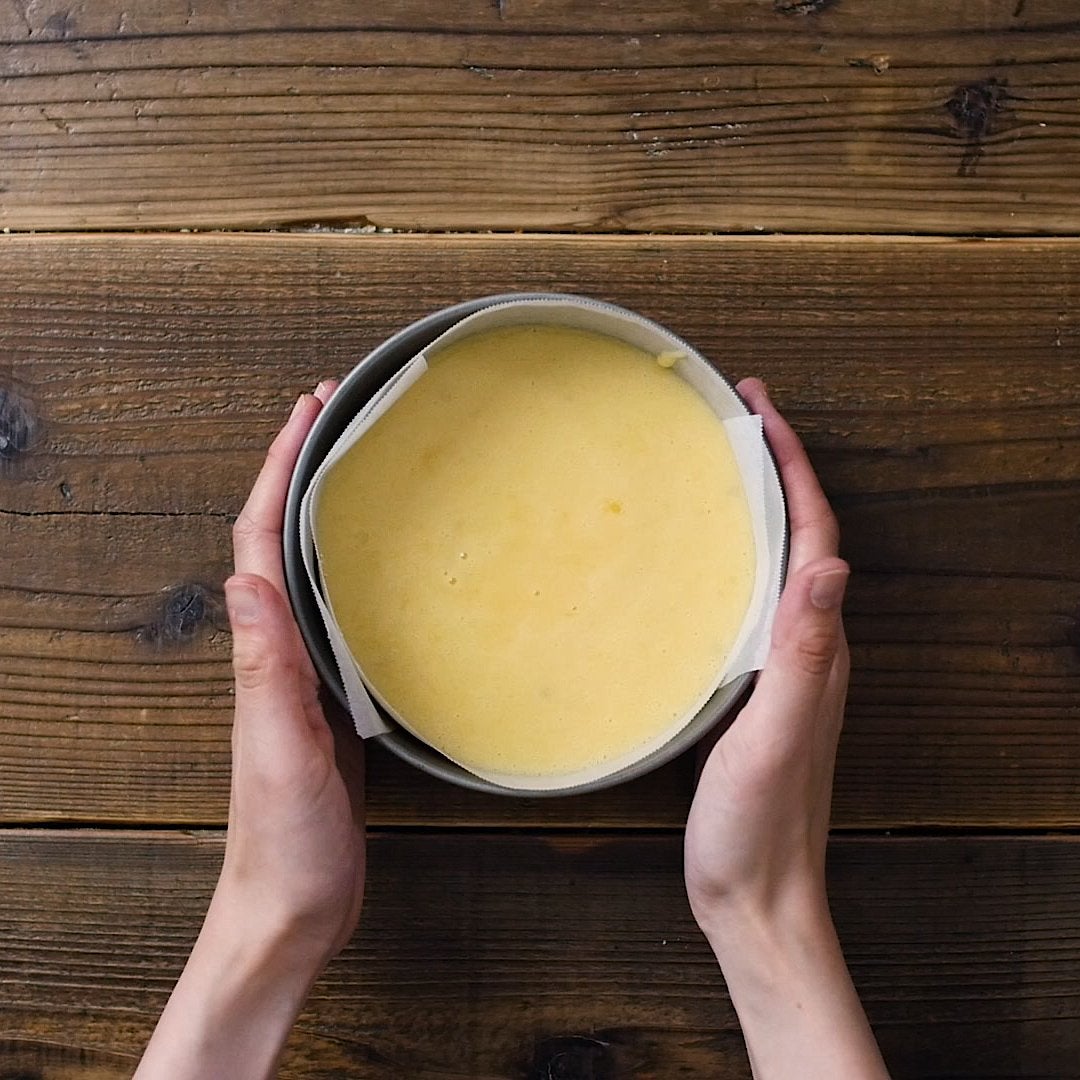 型に流し入れたら軽く台に打ちつけ、170℃に予熱したオーブンで45〜50分焼きます。