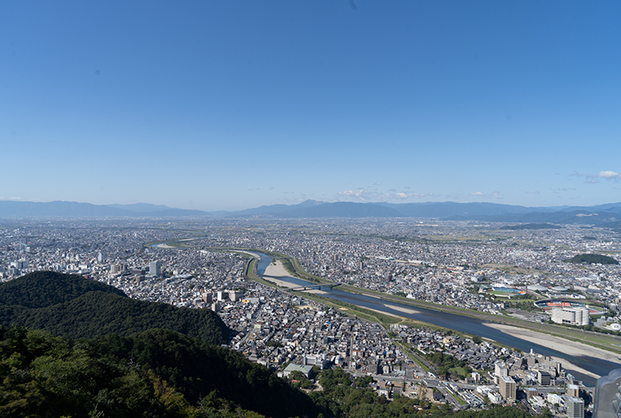 岐阜市内で2番目に高い山、金華山にそびえ立つ〈岐阜城〉。戦国時代には斎藤道三、そののち織田信長が居城としました。山の頂上に建っている城は「難攻不落の城」と知られています。現在はロープウェイに4分乗れば気軽に訪れることができます。