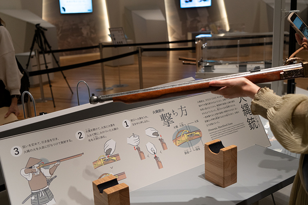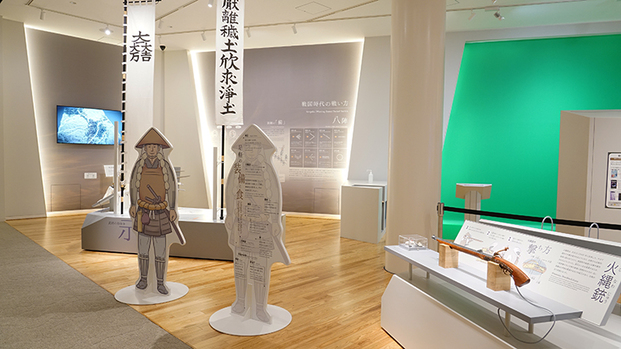 ロープウェイ乗り場には、2020年NHKの大河ドラマ『麒麟が来る』で斎藤道三を演じた本木雅弘さんの人形や直筆サインのパネルなどが置かれています。本木さんにそっくりで迫力ある蝋人形は、指の毛まで生えています。本木さんのリクエストに応えたそうですよ。
