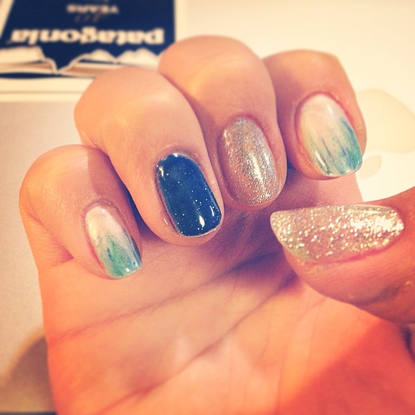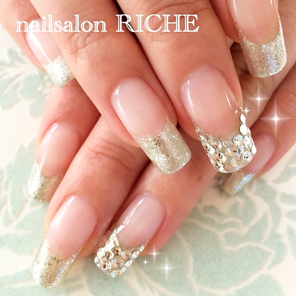 ホワイトやクリアベースにゴールドをのせて、いかにも夏ネイルって感じ。