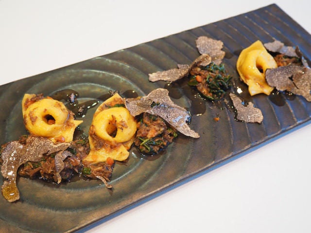 ディナータイムには2種類のコースが用意されているが、そのどちらも、前菜、手打ちパスタ、メイン、デザートという構成。特筆すべきは「選べるパスタ」の種類の多さで、なんと約20種類を用意。門外不出のレシピで作るラヴィオリなど、同店でしか食べられない料理もあるので、ぜひ体験してみたい。