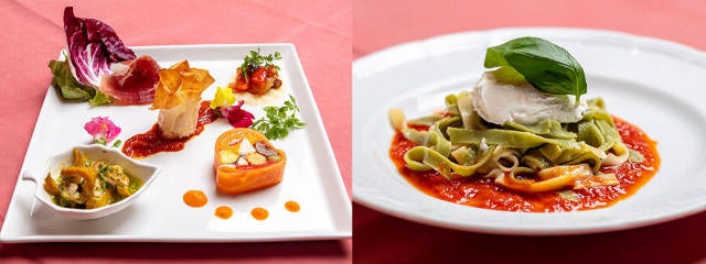 そのひとつが「マグロのラビオリ仕立て メッツァルーナ」(写真上・左)。極薄にスライスしたマグロに、水牛のリコッタチーズメインのフィリングがサンドされたユニークな料理だ。