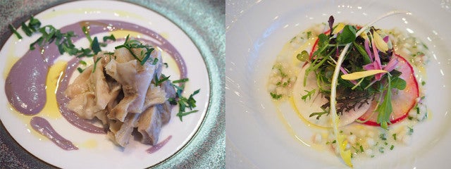 また、赤カブ、白カブ、雪カブと3種のカブを使った「石鯛と蕪の冬サラダ」(写真上・右)には、イタリアの魚醤であるコラトゥーラを使用。石鯛との相性もばっちりだ。