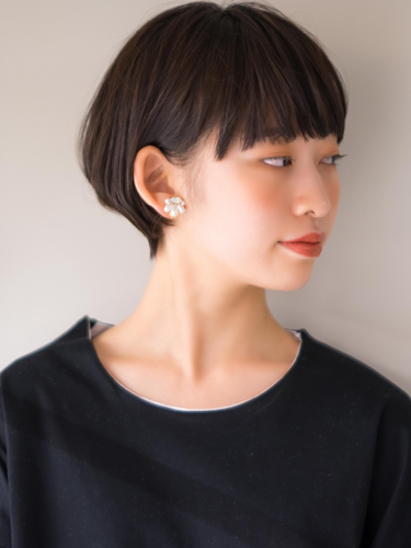 トップにはあまりボリュームはないものの、ふんわりと丸みを帯びたシルエットのショートは、面長さんにもぴったりなヘアスタイルできれいめな仕上がりも魅力です。