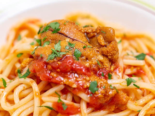 自慢のパスタには、トッピングにもソースにもウニがたっぷり!