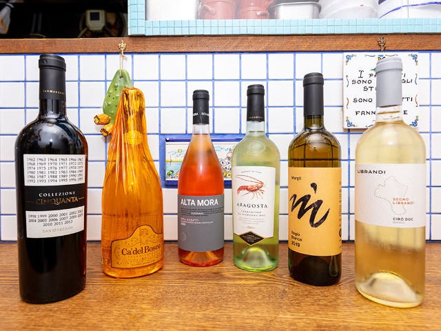 近頃、評価が上昇しているプーリアワインの赤や白、シチリアワインのロゼなどもそろっている。濱崎シェフ自らが訪れたサルデーニャ島のワイナリーのワインもあり、それぞれグラスで楽しむこともできる。