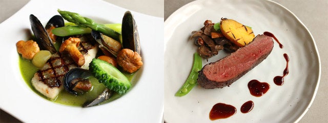 ちなみに、写真上の「白身魚とマダコのパイ包み焼き」は、パイ生地の中に、白身魚のすり身に包まれたマダゴがたっぷり詰め込まれた一品。ベアルネーズソースと赤ワインソースを絡めるとおいしさが増幅するのが楽しい。