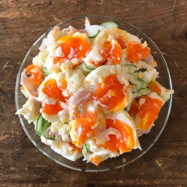 最後にご紹介する幼稚園の年少さんのお弁当に大人気の副菜おかずは、玉子の色がとっても鮮やかなポテトサラダレシピです。