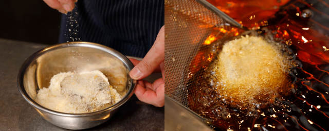 だが、そのままでは素朴すぎて日本人には受けない。そこで思いついたのが、日本人の好きな「カツレツ」にすること。ボリートに添えられる定番ソース「サルサヴェルデソース(イタリアンパセリにアンチョビ、ニンニク、ケッパーなどを加えて撹拌したソース)」とともに、塩、マスタードを添えている。付け合わせは、マッシュポテトと葉野菜。