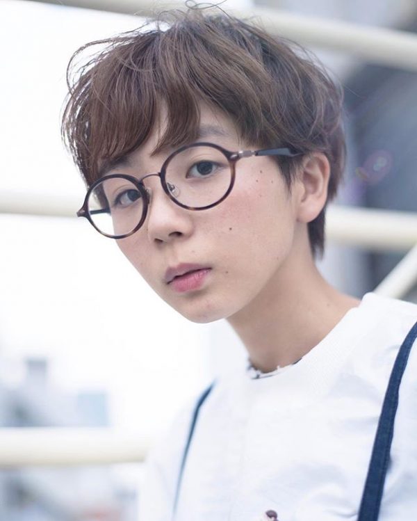 アクセサリーとして眼鏡を取り入れたアレンジは、同じショートヘアでも一気に知的な印象になります。