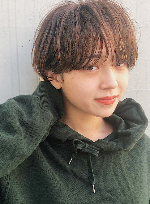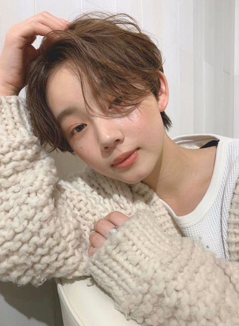 ふんわりと柔らかい質感が大人可愛いショートスタイルです。前髪はトップから作り、印象的な目元と小顔効果をプラス。カラーはベージュ系です。