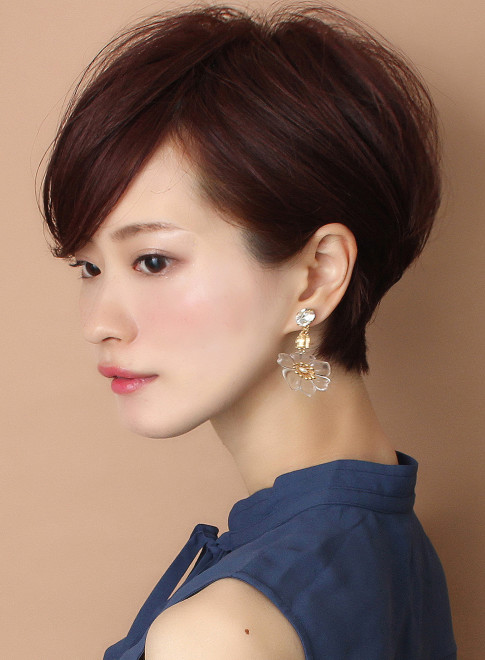 どの角度から見ても美しい、シルエットが自慢のショートスタイルです。後頭部は丸みを出し、襟足はタイトに仕上げてめりはりアップ。直毛の方はワンカールパーマをかけても◎。