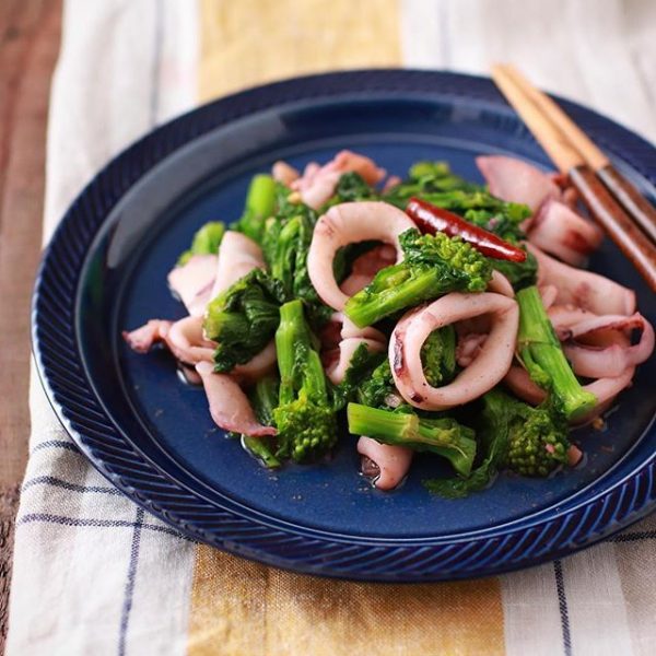 美味しいイカと菜の花のペペロンチーノ風炒め