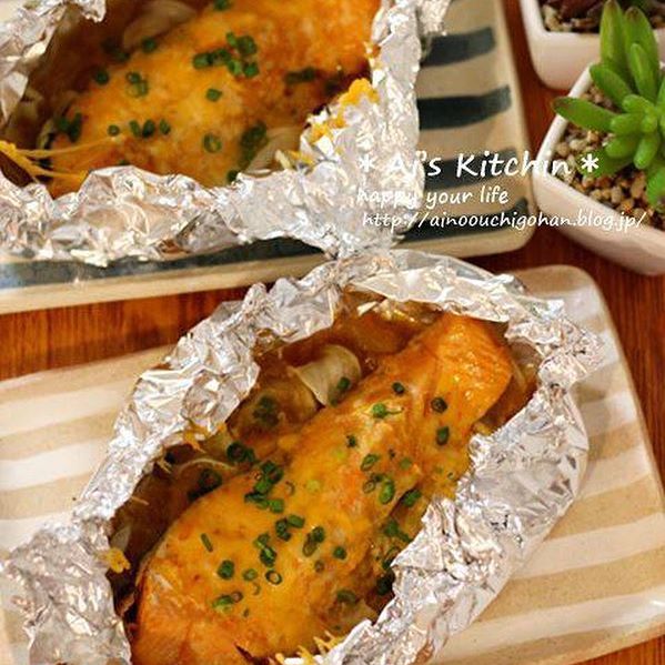 ヘルシーな献立!鮭の味噌チーズホイル焼き