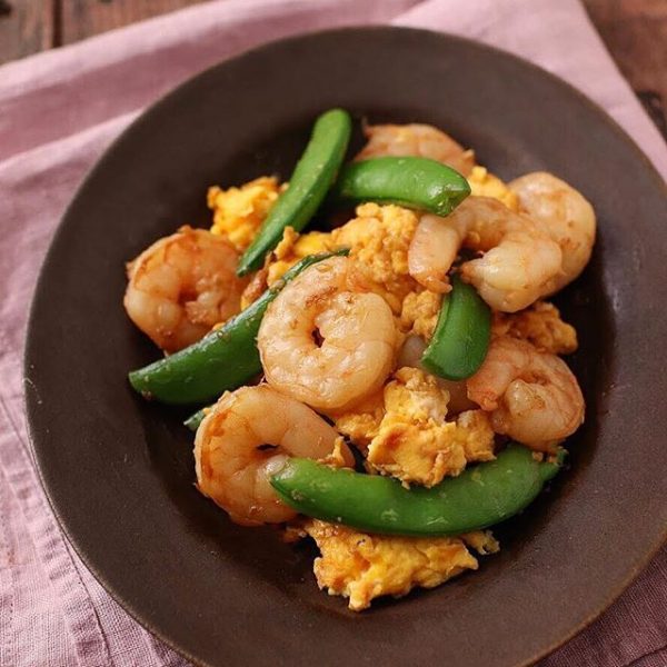 エビとスナップエンドウの簡単な卵炒め