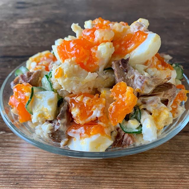 いつものポテサラにサバ缶を加えることで旨味がプラスされ美味しくなります。このレシピはすぐできるのでお弁当にパパっと加えてみてはいかがでしょうか。