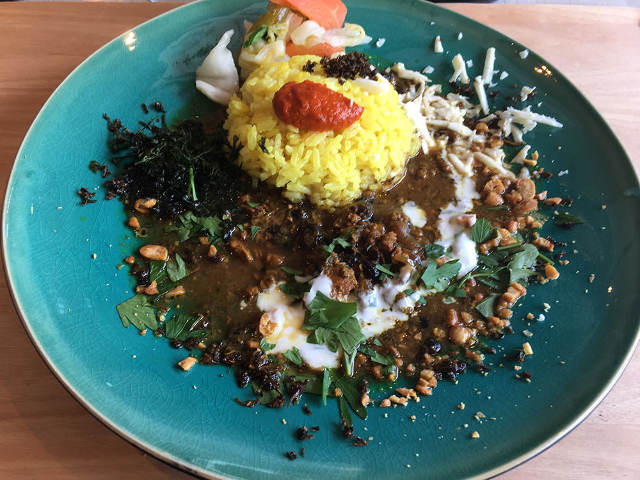 一見インドカレー、しかし韓国の「水キムチ」や和の発酵高菜、海苔の香味干し、ドライ納豆が散りばめられ、上質なペコリーノチーズも添えられる。その発酵とスパイスのジャムセッションは、東西どこにも属さない伊藤ワールド。『Ri.caricaランド』ならではの、食材の個性が身体を癒やす「発酵スパイスカレー」だ。